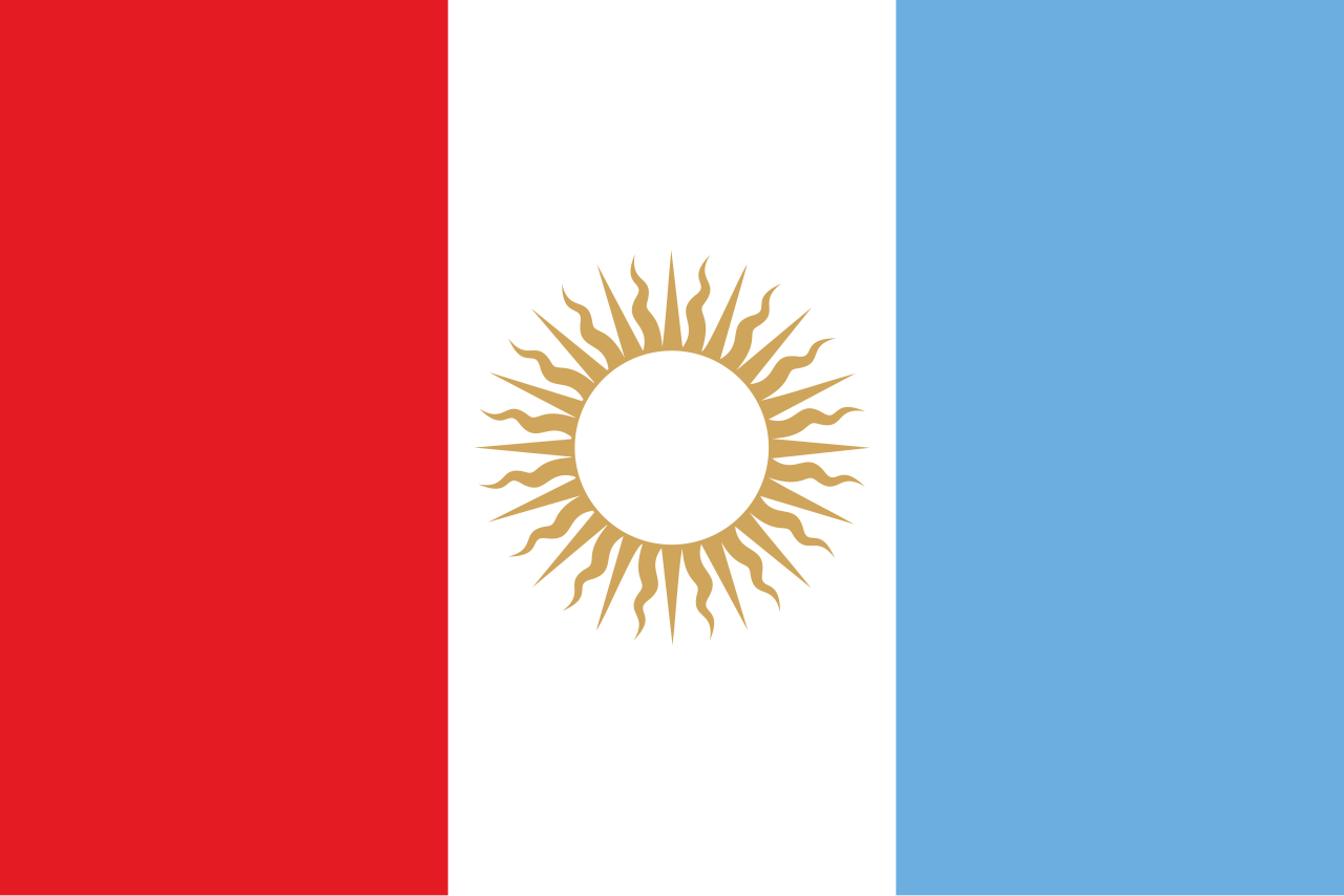 Está compuesta por dos franjas horizontales iguales: la superior en azul celeste y la inferior en blanco, los mismos colores que identifican a la Argentina en su dimensión federal.